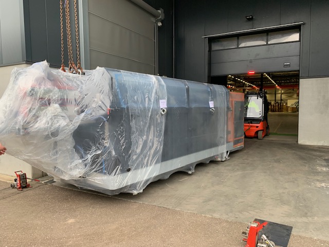 Door de omvang van de machine werd een deel zelfs geplaatst via het dak.